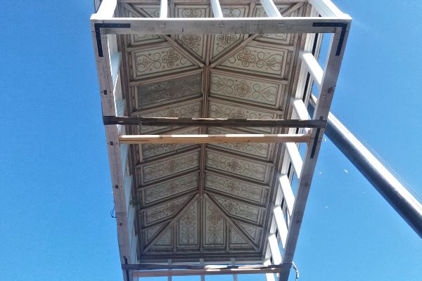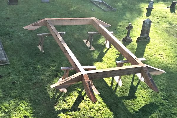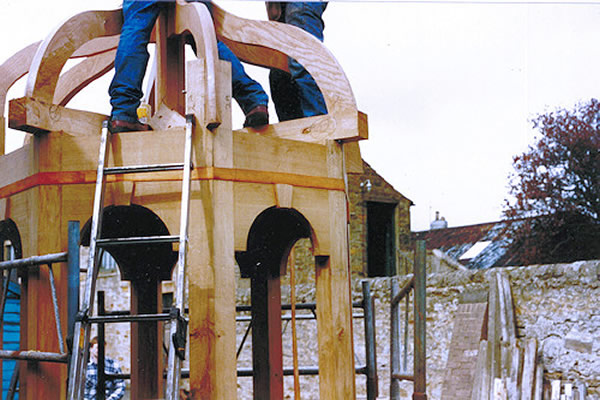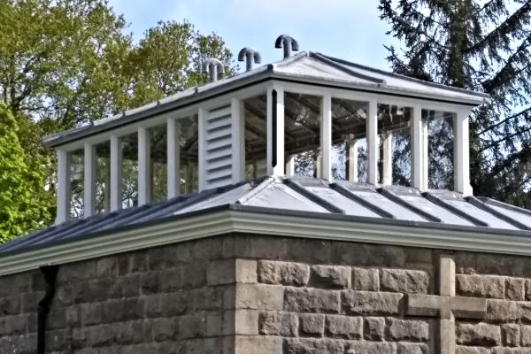 Lartington Mausoleum - Lifting refurbished Lantern back on